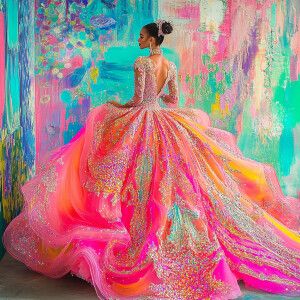 «The image showcases a person dressed in a vibrant traditional ou...»