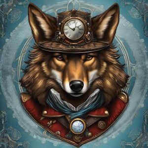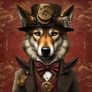 «Male, anthromorphic Florida red wolf, sky pirate»