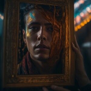 «A hyper-realistic digital artwork of a ice sculpture depicting m...»