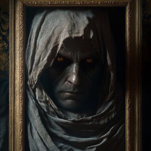 «As an unsuspecting man looks beneath a cloth, draped over the cu...»