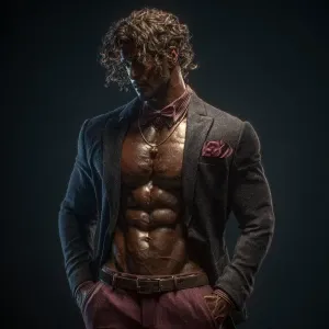 «Generate an image of a muscular and hairy handyman without a shi...»