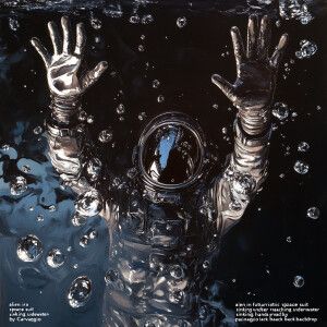 «view from above aerial view "alien in a futuristic space suit si...»