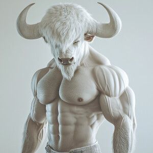 «A White Man-Buffalo with extra huge muscles 3DCHARACTER photorea...»