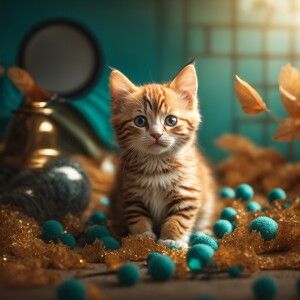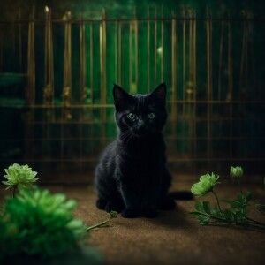 «Night time, donskoy cat, kitten, black, green eyes, warehouse, f...»