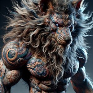 «A Man-Wolf Hybrid with huge muscles and wearing Tribal Tattoos 3...»