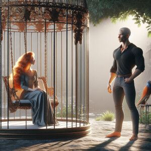 «Photorealistic image. Punished, A beautiful long ginger haired p...»