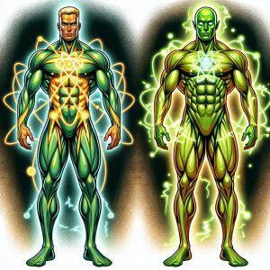 «Atomic man and Atomic man in mars bodybuilder bodysuit»