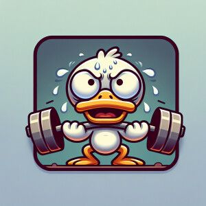 «2D icon duck struggling to lift weights»