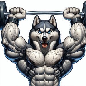 «2D animated muscular husky lifting weights icon»