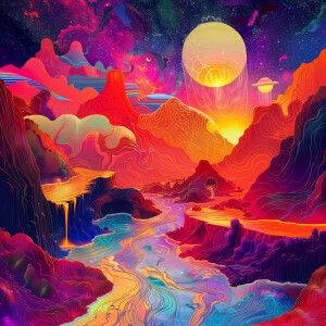 «Create a vivid dreamscape scene filled with mesmerizing psychede...»