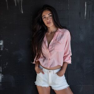 «Capture the elegance of a fair-skinned woman with dark long hair...»