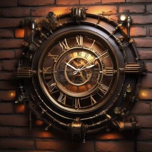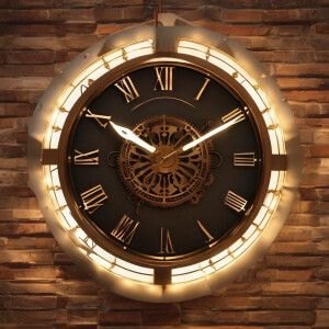 «Clock of wall with light behind with industrial metal finish. Ma...»