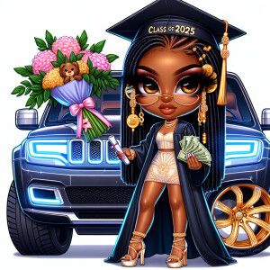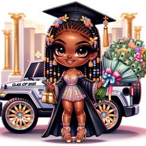 «Illustrate a glamorous African American high school senior girl...»