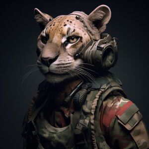 «Female, anthromorphic cougar, military gear»