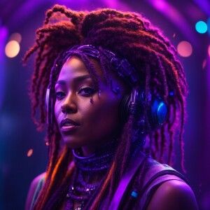 «A cyberpunk samurai with red hair, blug sword --chaos 25»
