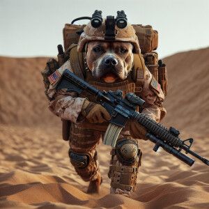 «Create a realistic image of a pit bull as a human US Marine stro...»