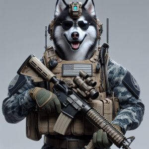 «Create a realistic image of a husky as a human US Navy soldier,...»