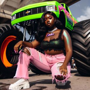 «A young adult black Trinidadian woman plus size with iridescent...»