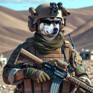 «Create a realistic image of a husky as a human US Marine strolli...»