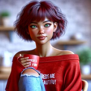 «Photorealistic image. Beautiful long ginger haired, pale skin, f...»