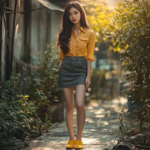 «Capture the elegance of a fair-skinned woman with dark long hair...»