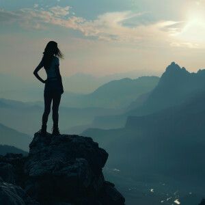 «Fair-skinned woman with dark long hair, elegant and composed, st...»