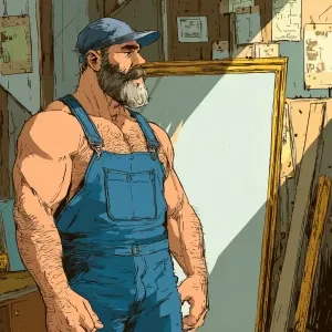 «Generate an image of a muscular handsome well groomed and hairy...»