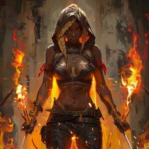 «A strikingly fierce Eritrean assassin girl, with rogue brown ski...»