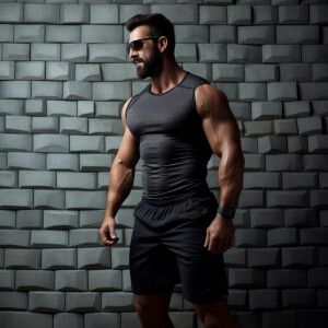 «The image shows a muscular male figure from the waist up standin...»
