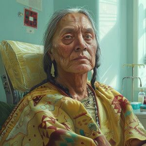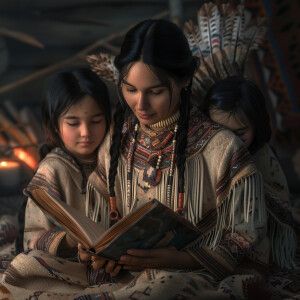 «Create a realistic 8k 4d image of a native american woman sittin...»