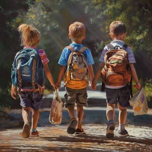 «Create a realistic picture of kids going back to school»