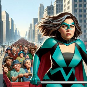 «Craft a chilling tale where rabbit-headed figures embrace elderl...»