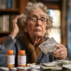 «Create a realistic picture of a senior citizen looking at prescr...»