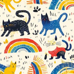 «A whimsical image of a fox sipping coffee against a colorful rai...»