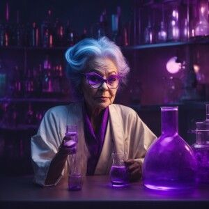 «Yzma with pale, older lady wrinkled skin,a sinister face, holdin...»