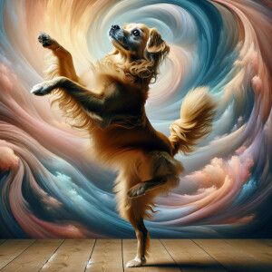 «Vivid imagery of a dog gracefully dancing to a mesmerizing tune»
