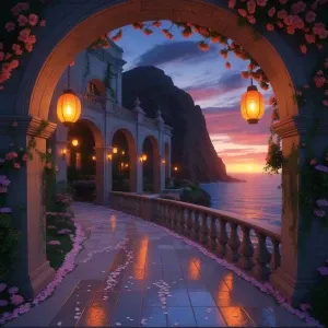 «Sunrise Balcony Niche: A secluded circular balcony carved from s...»