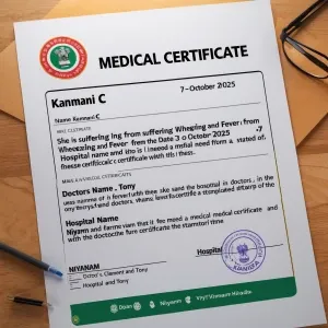 «Make a medical certificate in the name Kanmani c like she is suf...»