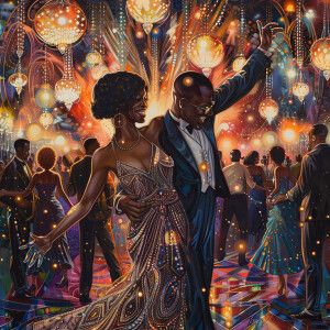 «Create a vibrant cartoon illustration depicting a glamorous Afr...»