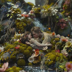 «ultra high resolution 3D image of a man and a woman holding each...»