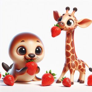«A little sea Seal blue and giraffe eating strawberries with whit...»