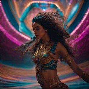 «An extraterrestrial belly dancer gracefully moving to the rhythm...»