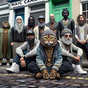 «A pack anamorphic cats dressed in hip-hop clothing and jewelry s...»