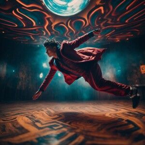 «An extraterrestrial break dancer gracefully moving to the rhythm...»