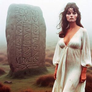 «Faded color film photograph from 1971 of a stunningly beautiful,...»