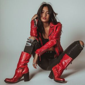 «Photo of fair skinned hourglass figure woman with dark straight...»