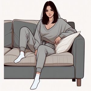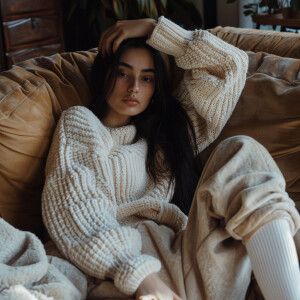 «Photo of fair skinned hourglass figure woman with dark straight...»
