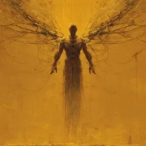 «A bioluminescent dystopian droid mechanic gleams with a haunting...»