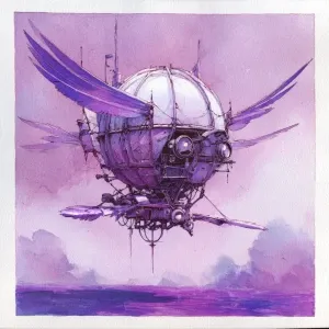 «Scifi sphere drone floating upside down above a violet sea, buil...»