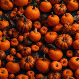 «A portrait swirl, surrounded by pumpkins»